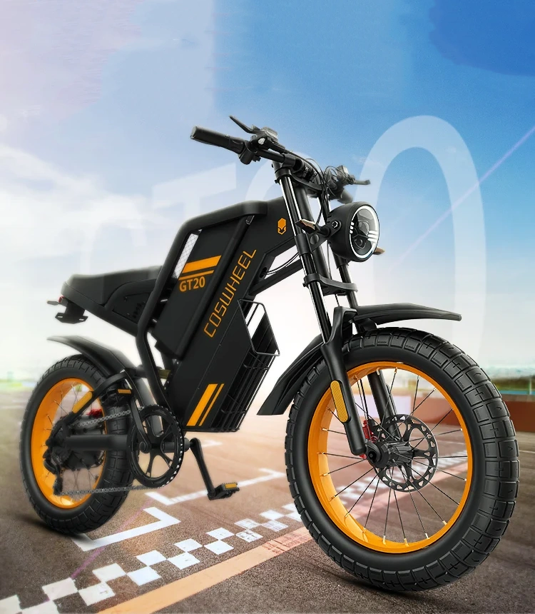 The motorcycle style Coswheel GT20 electric bike is powered by a powerful brushless DC hub motor with internal gear, standard 1000W high-speed rear motor.